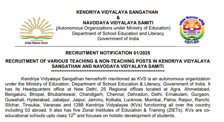 KVS NVS recruitment 2025 notification pdf: Recruitment has been announced for 14967 teaching and non-teaching posts in Kendriya Vidyalayas and Navodaya Vidyalayas. CBSE has issued a detailed notification of KVS NVS bumper recruitment, according to which the online application process will start today, 14th November at 10 am.